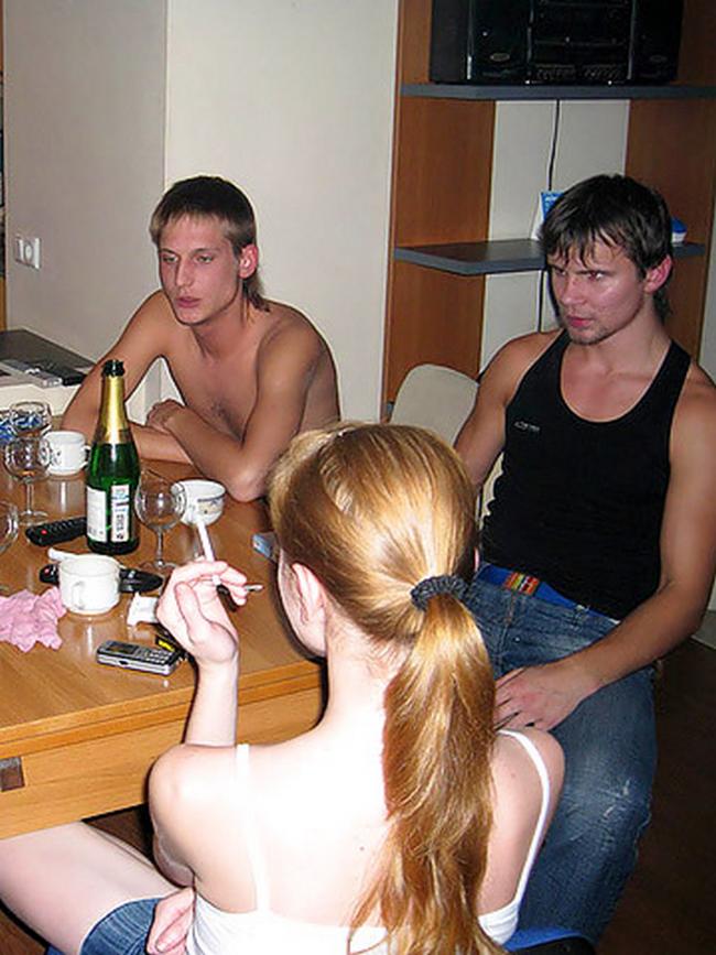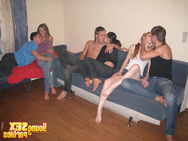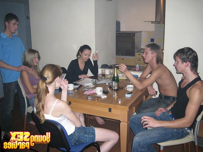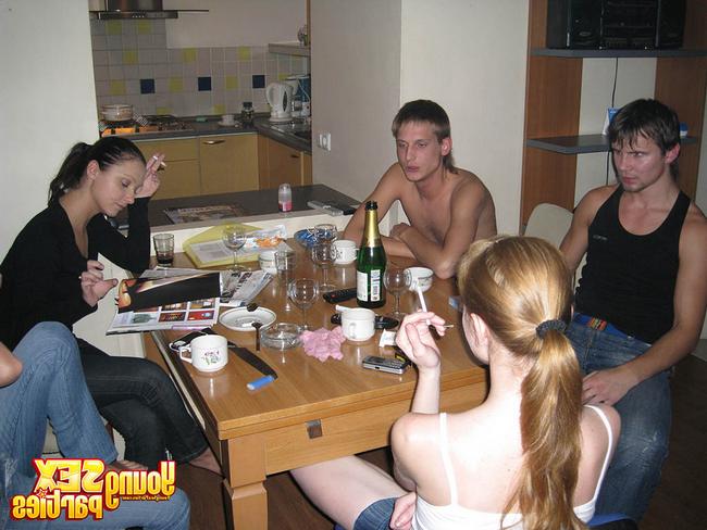 Молодые люди сняли квартирку для своих сексуальных приключений. Пьяная компашка наконец то дошла до того момента, когда захотела потрахаться. Вот и разобрались все по парам, малышки прыгали на хуях и делали минет, от чего громко кричали и пульсировали письками.