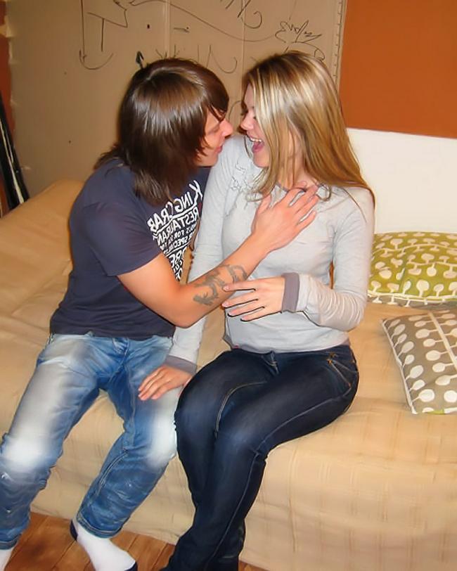 Девушка пригласила в гости своего дружка. Они немного выпили и сразу придумали чем заняться. Умостились на мягкой кроватке и слились во едино своими половыми органами.