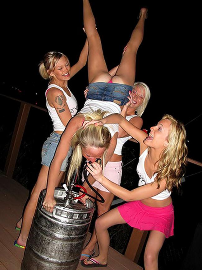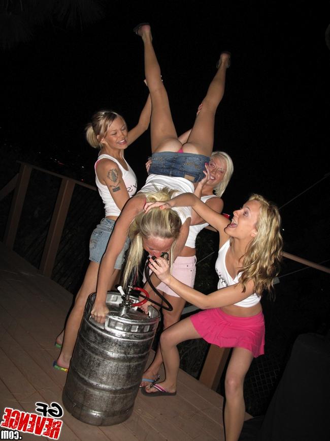 Этим пьяным крошкам хватило бочки пива, что бы прийти в такое состояние. Они шалили и с каждым глотком это у них получалось все горячее и пошлее. Девки скоро полностью разделись и показали упругие формы, а потом и вовсе на секс перешли.