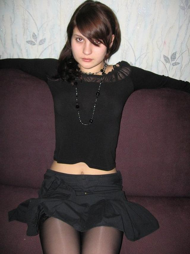 Хорошенькая темноволосая красотка постепенно снимает с себя платье. Этой милашке, действительно, есть чем похвастаться перед всеми мужчинами. У нее хорошее стройное тело, как у какой-нибудь профессиональной модели и невероятно длинные ножки, стройность которых подчеркивают сексуальные черные чулочки.