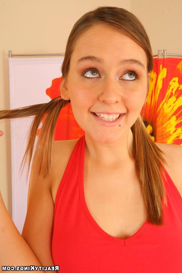 Молоденька проказница показала своему новому знакомому потрясающий стриптиз, избавившись от одежды. А потом опустилась на колени для того чтобы подарить ему потрясающий минет. Нежная красотка с хвостиками сосёт большой прибор рабочим ротиком, а потом наслаждается изливающейся из конца спермой.