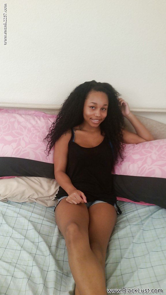 Темнокожая телка с кудряшками разделась на кровати 5 фото