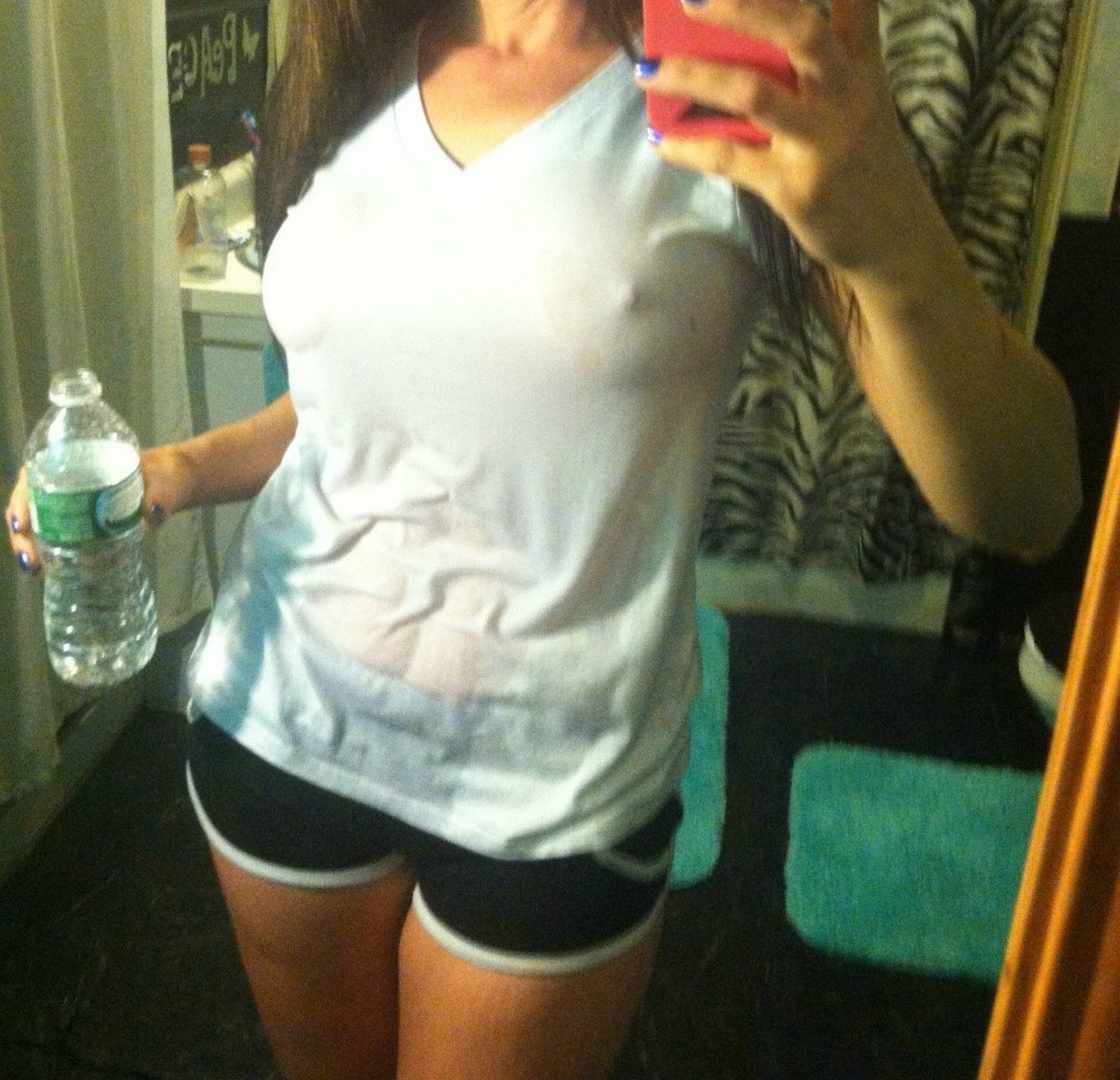 Спортивная девка позирует перед зеркалом без футболки порно фото