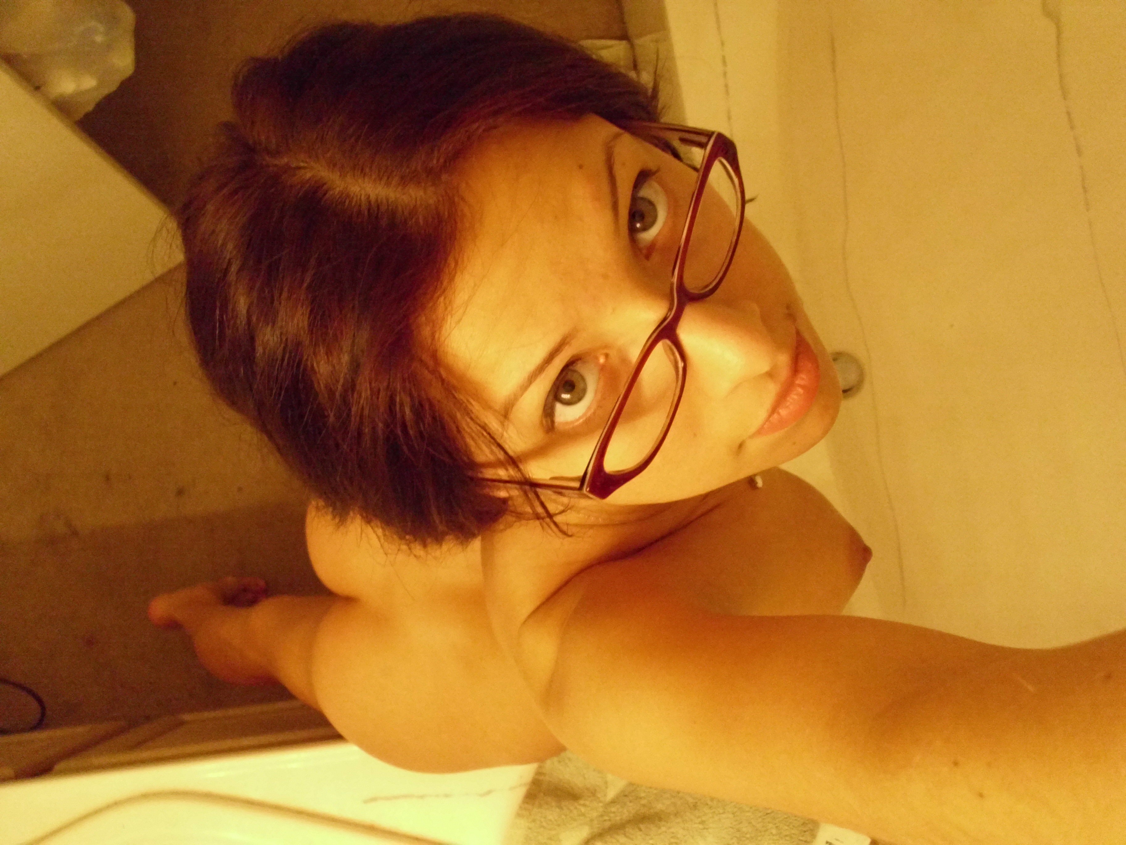 Молодая красотка в очках и с большими сиськами порно фото