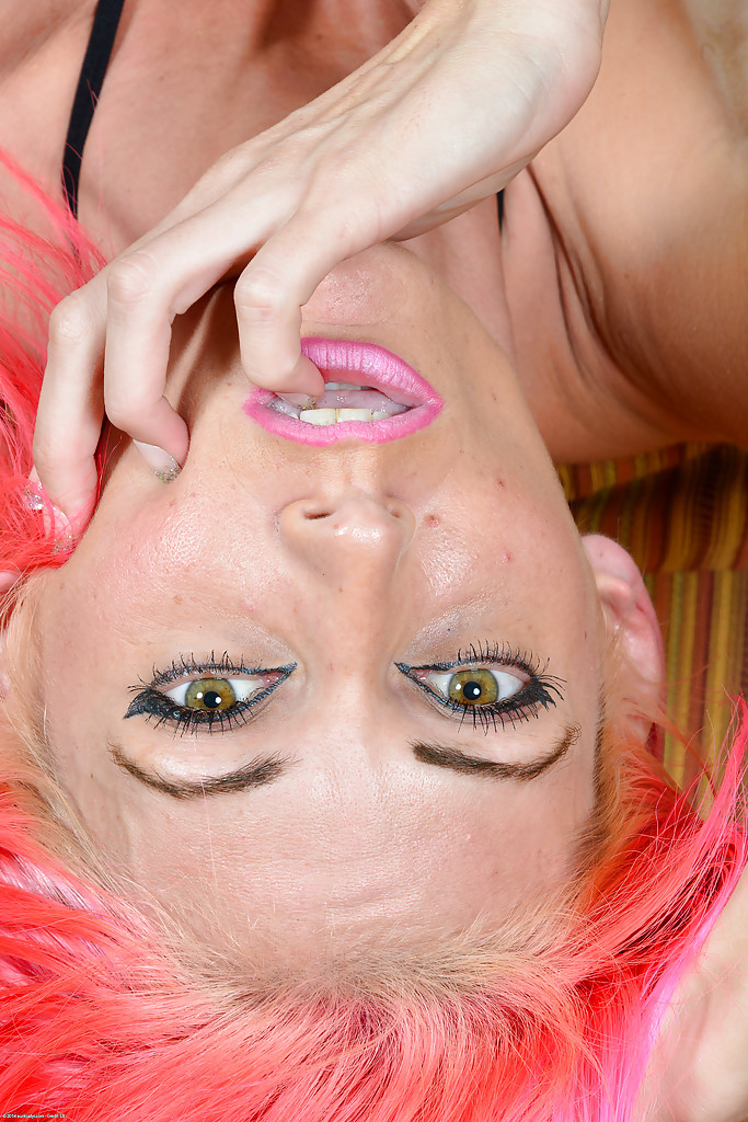 Худая соска с розовыми волосами показала стриптиз порно фото